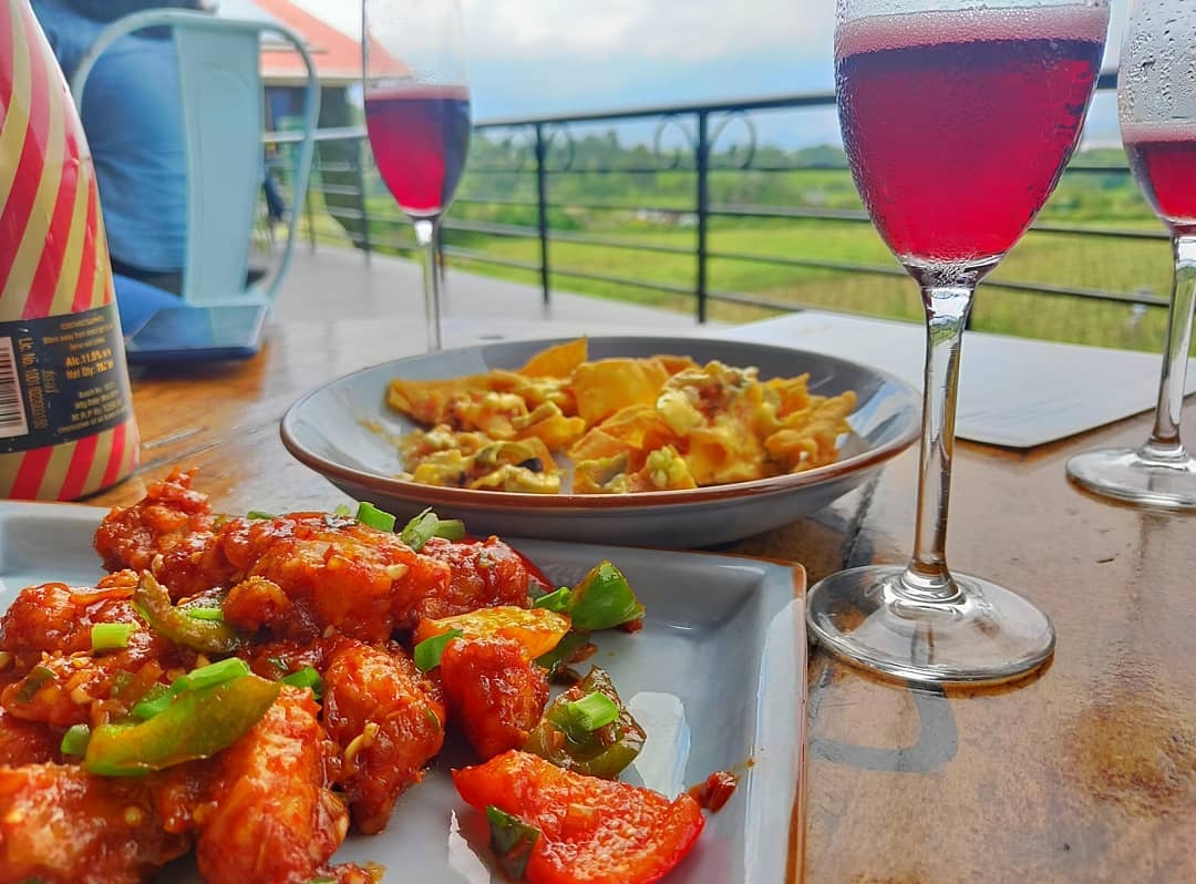 त्याबरोबर फोटो काढले वरती हॉटेल होते तिथे गेलो थोडं ऑर्डर केलं थोडस महाग होत पण ठीक होय वाइन घायला एक एक छोटा ग्लास 200-300 रुपये एवढी किंमत होती रेड वाईन घेतलेली किमती तुम्ही नेट वर पाहू शकता त्यासाठी इथे क्लिक करा ।